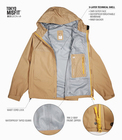 - TECHNICAL FEATURES: Includes essential elements like arm vents with YKK waterproof zippers, waterproof sealed seams, adjustable storm hood, YKK waterproof zippers for side pockets, inside pocket for mobile devices, YKK 2-way front zipper.