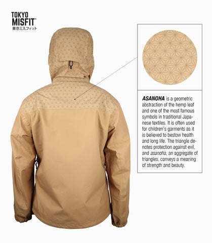 - CULTURAL SIGNIFICANCE: The distinct pattern featured on this jacket is the ASANOHA, which is a geometric abstraction of the hemp leaf and one of the most famous symbols in traditional Japanese textiles. It is often used for children’s garments as it is believed to bestow health and long life. The triangle denotes protection against evil, and ASANOHA, an aggregate of triangles, conveys a meaning of strength and beauty.